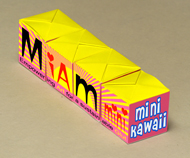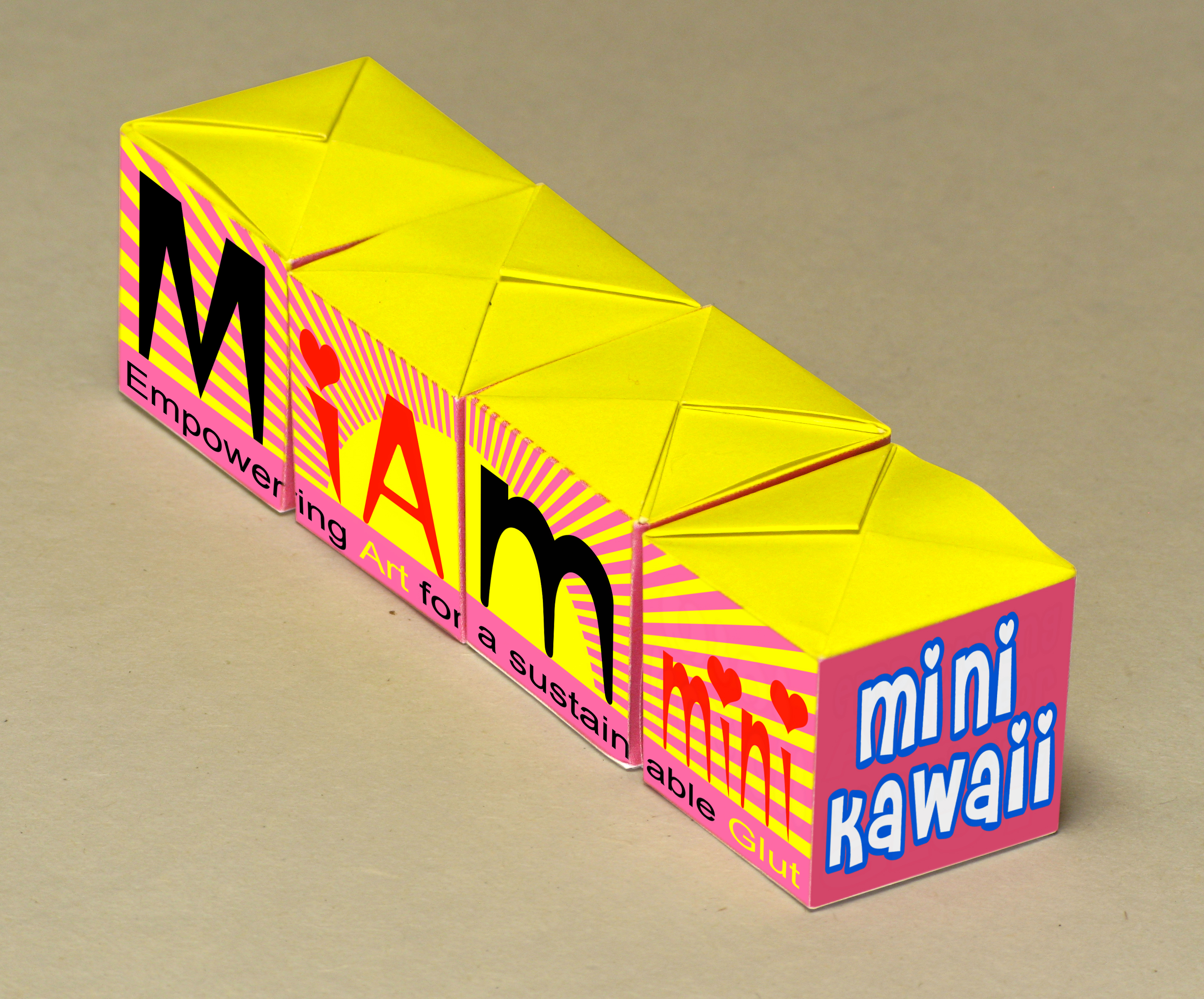 Miam mini kawaii Empowering Art for a sustainable Glut Piece of the "Broken teeth collection" Ready-made Four pieces of cement cubes, wrapping printed paper, 2,4 x 2,4 x 2,4 cm each Work in progress, available in the catalogue of the "Miam-manufacturing project" |