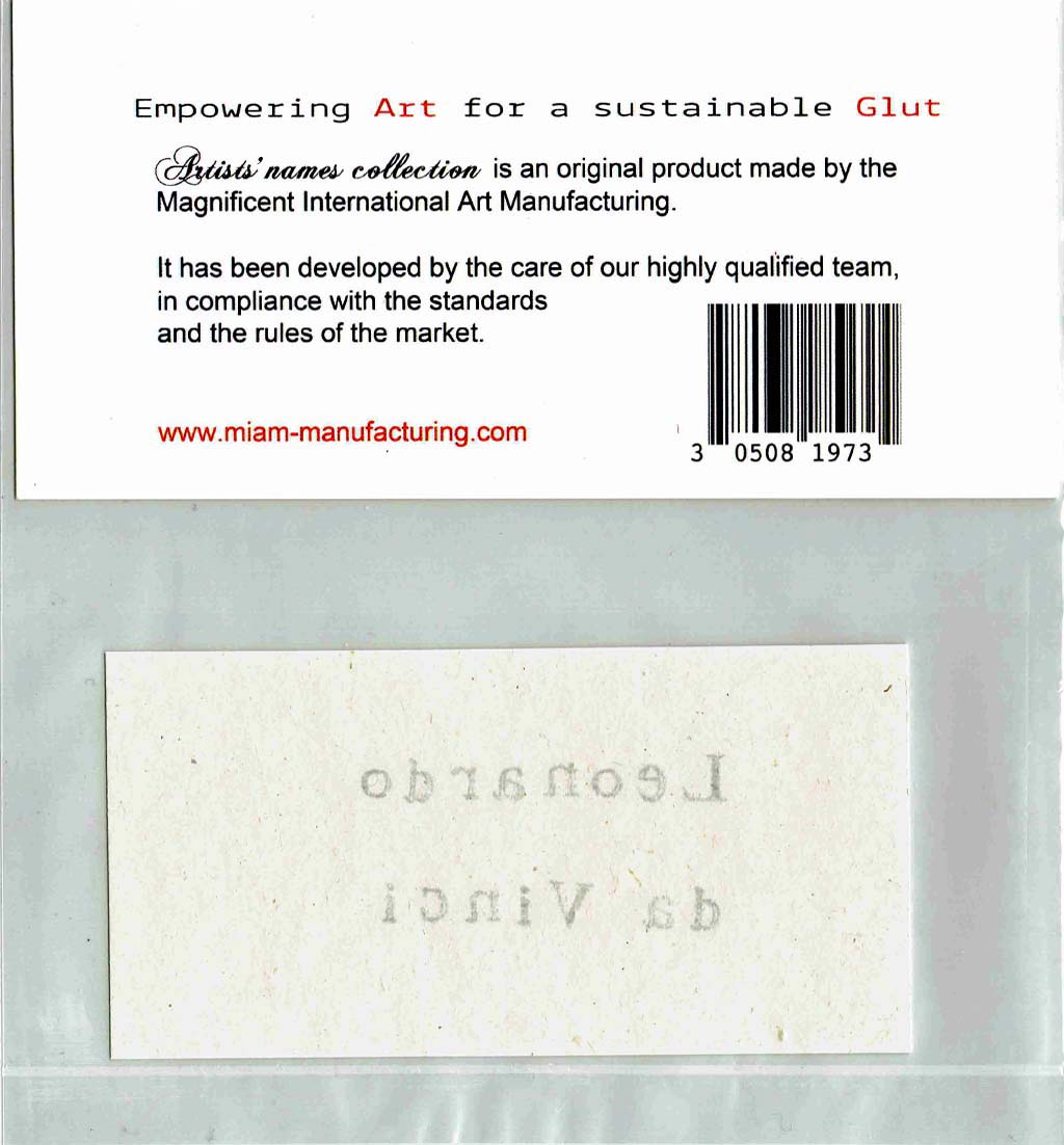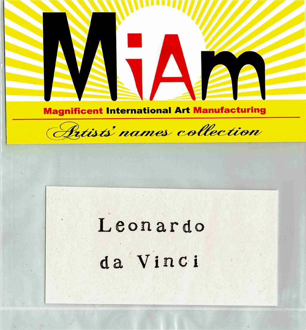 Artists' names collection Leonardo da Vinci, verso Ready-made Artists names collection from antiquity to modern age Work in progress, 723 items from Antiquity to the sixteenth century of Italian painters are already available in the catalogue of the "Miam-manufacturing project" |