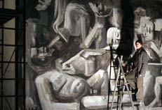 Oreibasie Zeus thundering Semele giving birth to Dionysus Painting,detail Acrylic and tar on canvas, 400 x 360 cm Work presented in-situ at the artist’s studio, Reims, France |