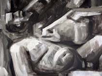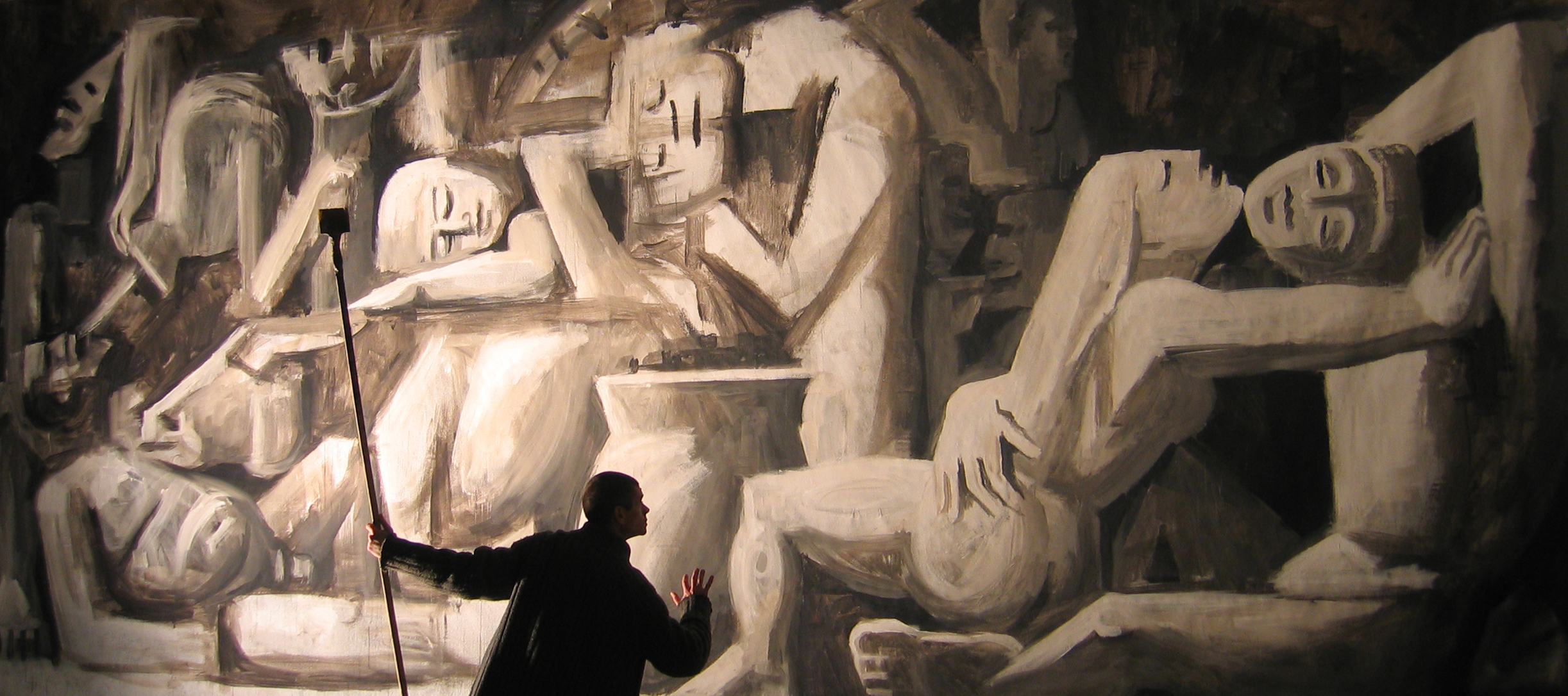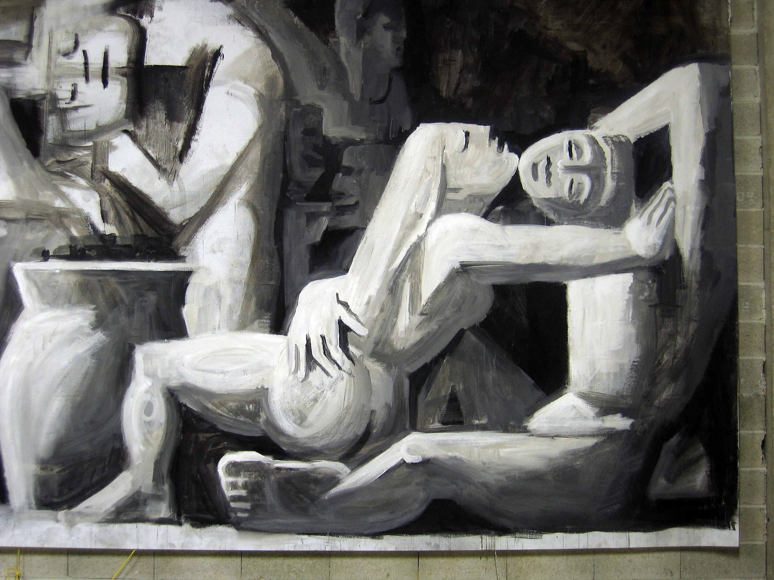 The drunkenness of Silenus Painting, detail Acrylic and tar on canvas, 800 x 360 cm