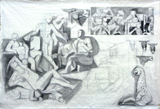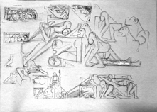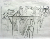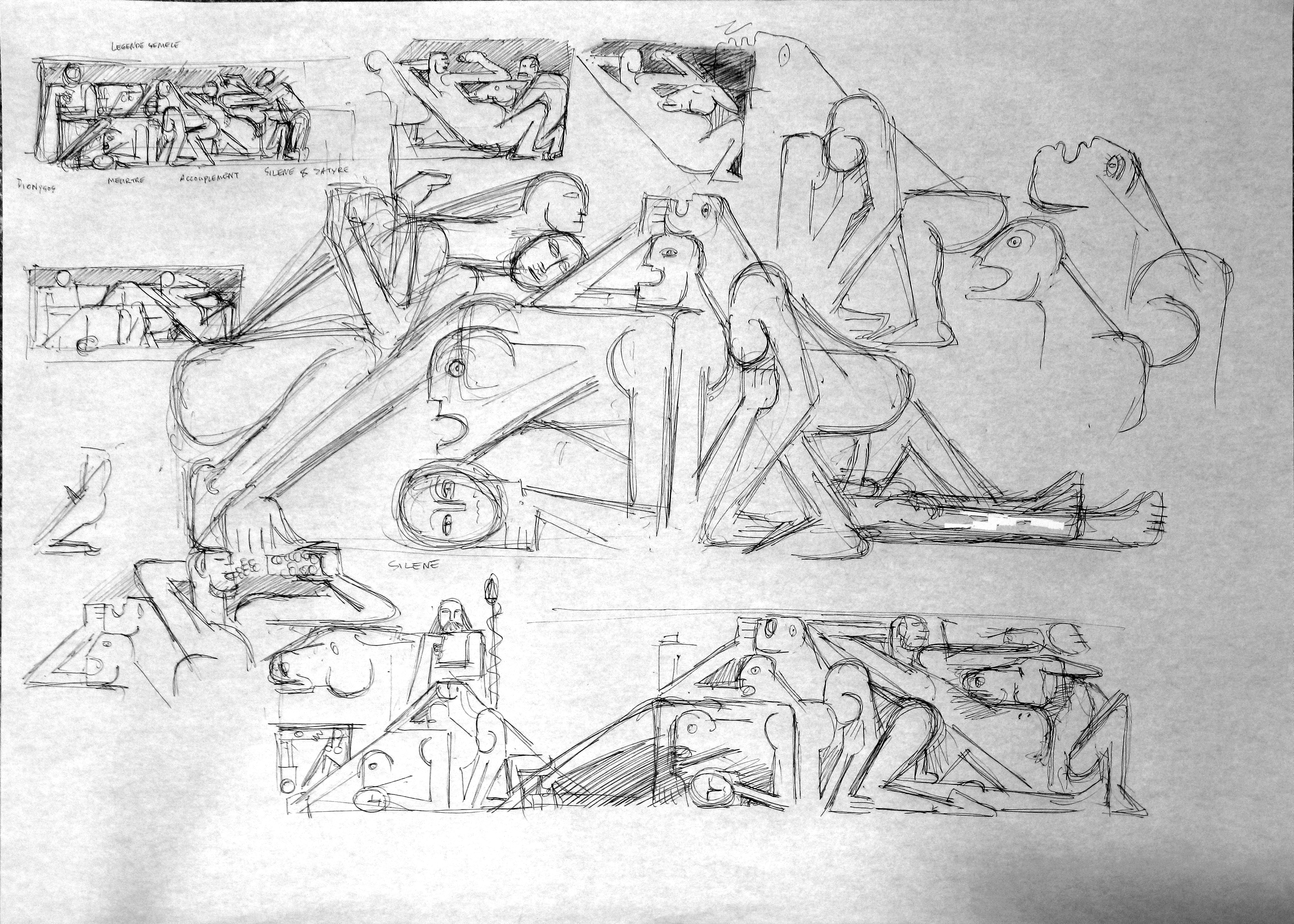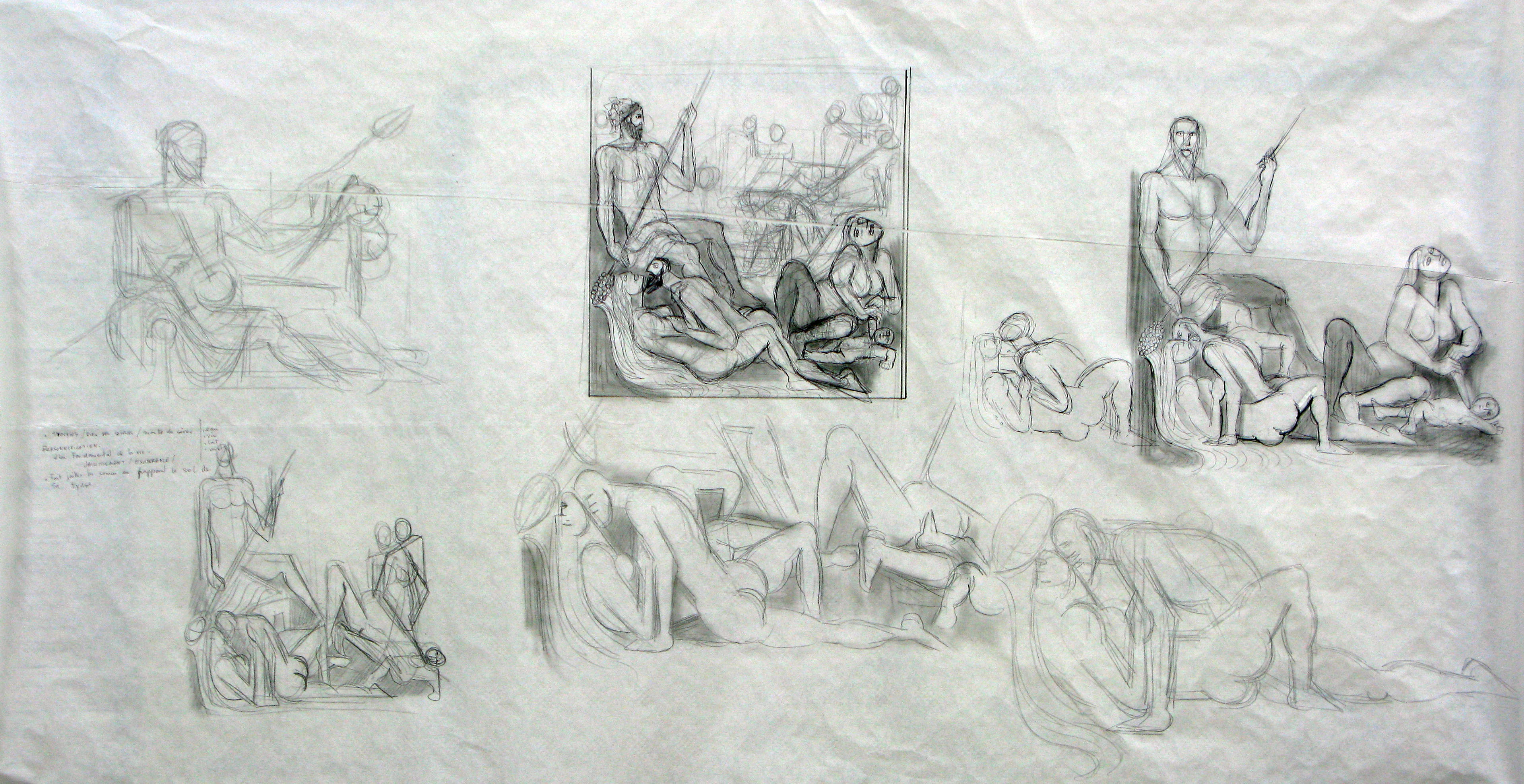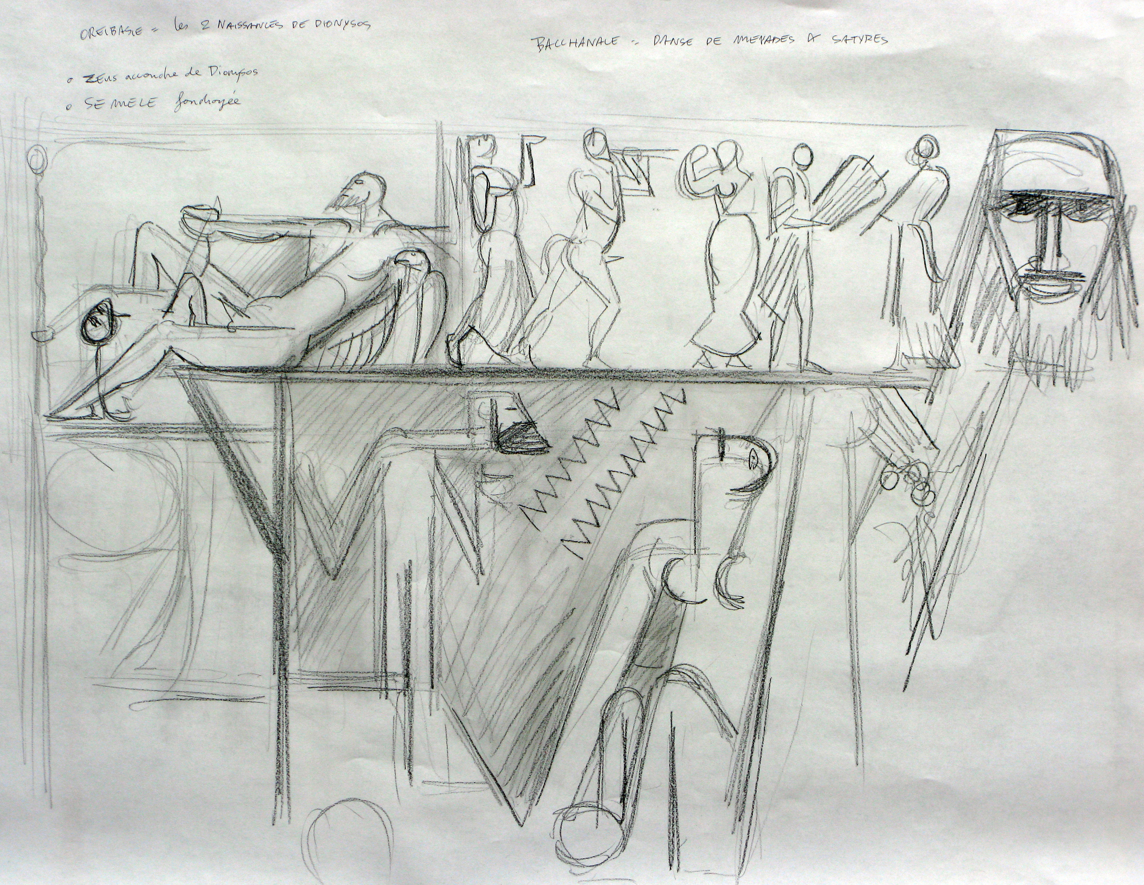 Oreibasie Drawing, studies for a composition Pencil and ink on paper, 120 x 82 cm Collection of the artist |