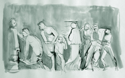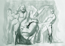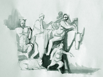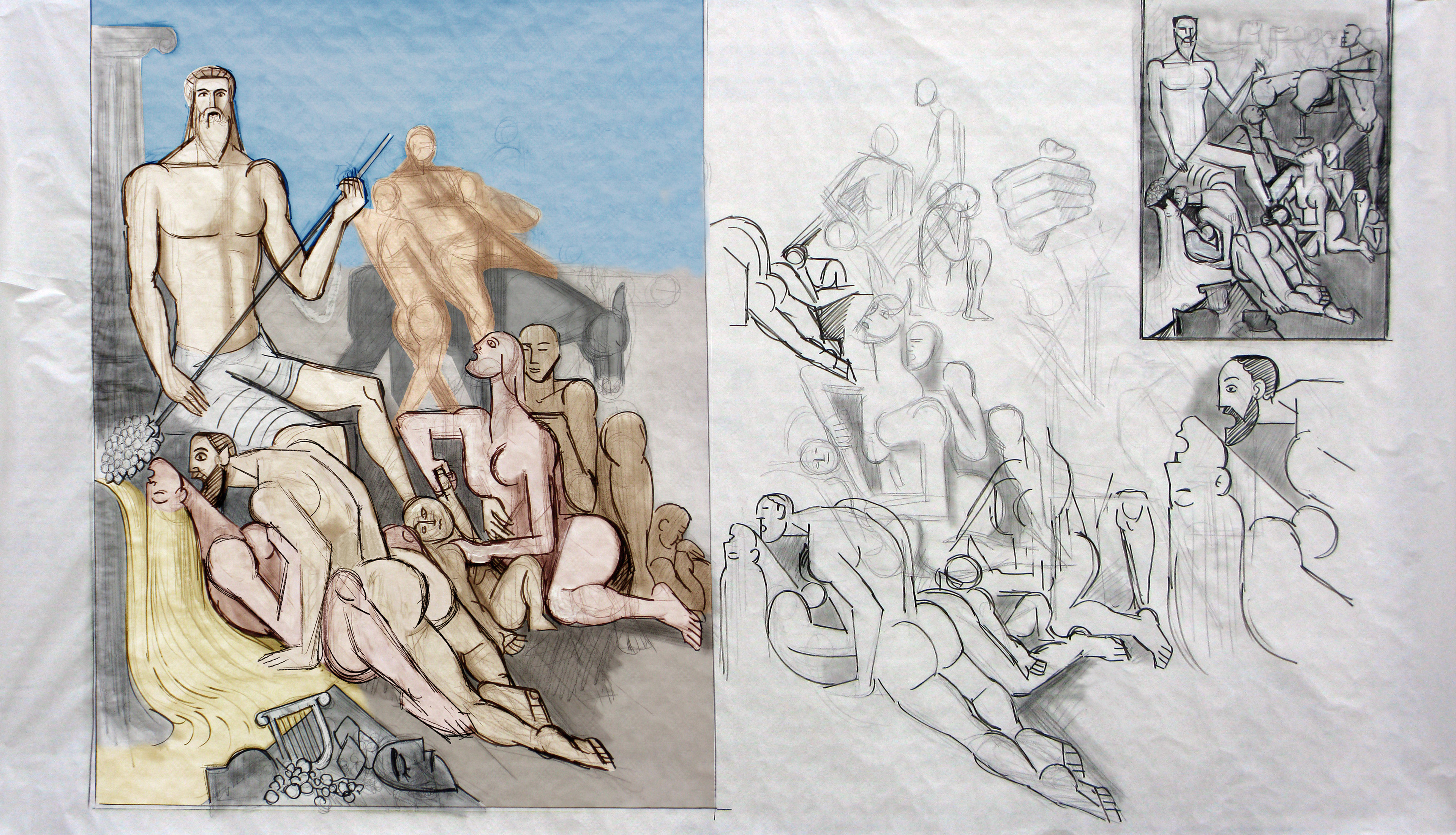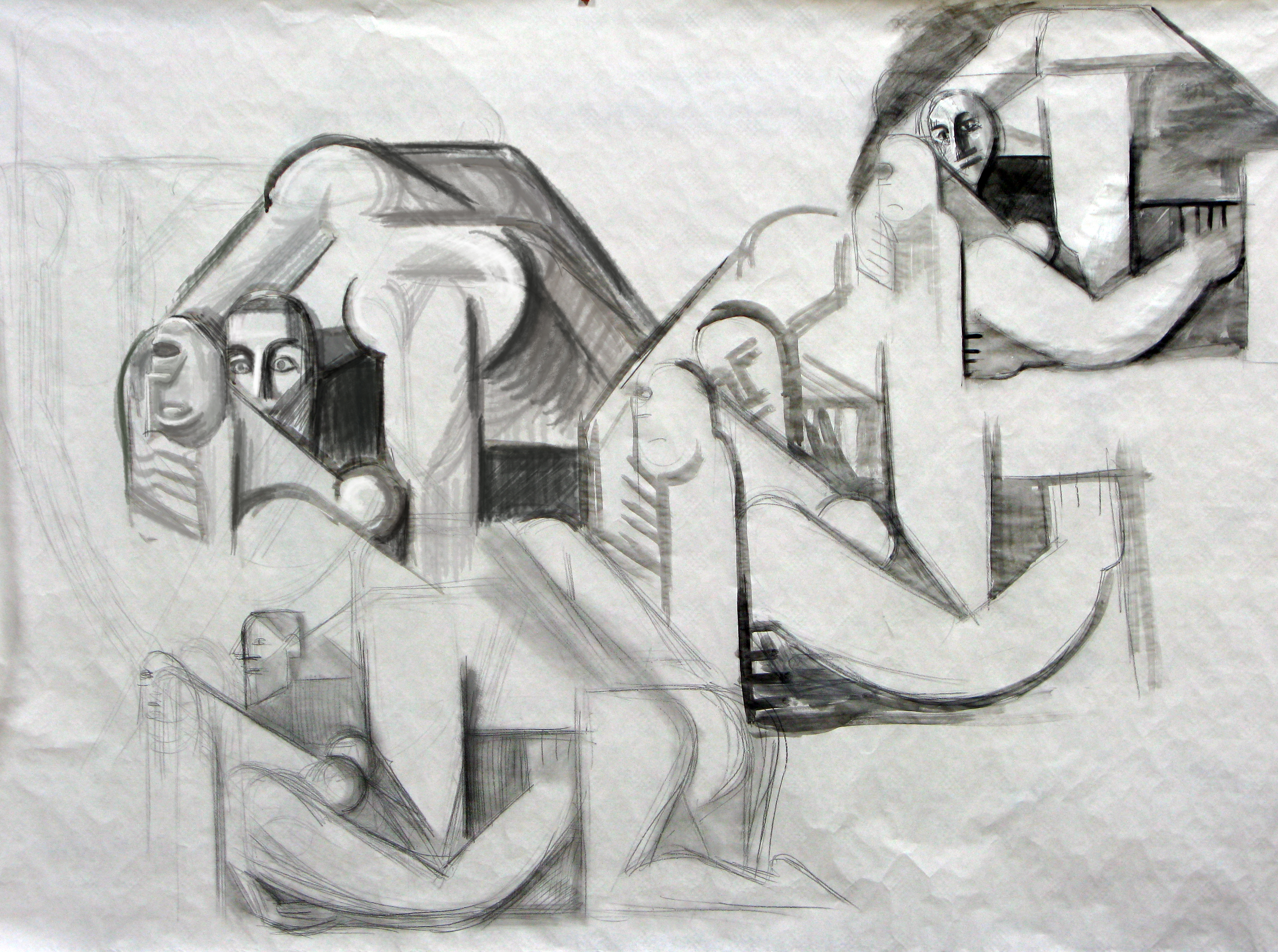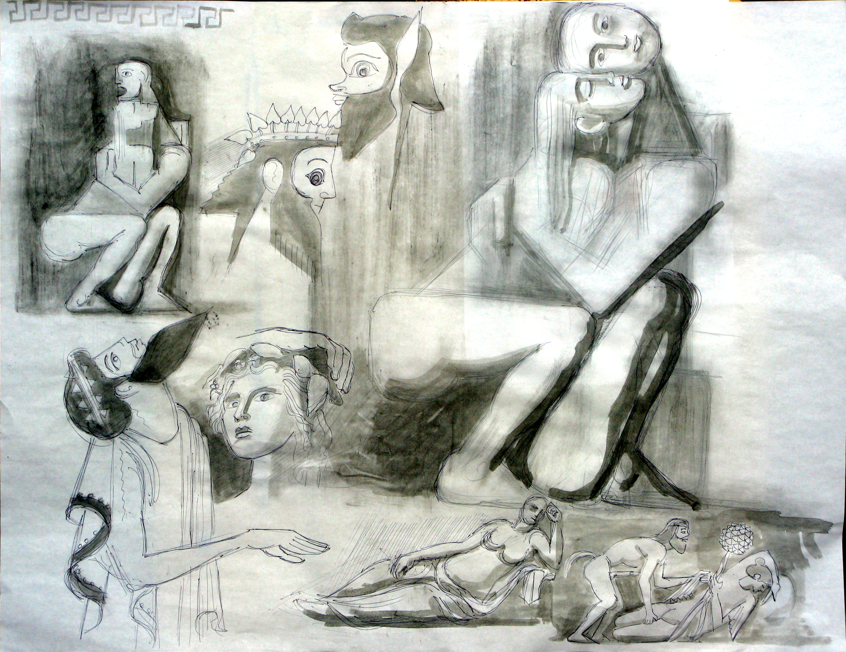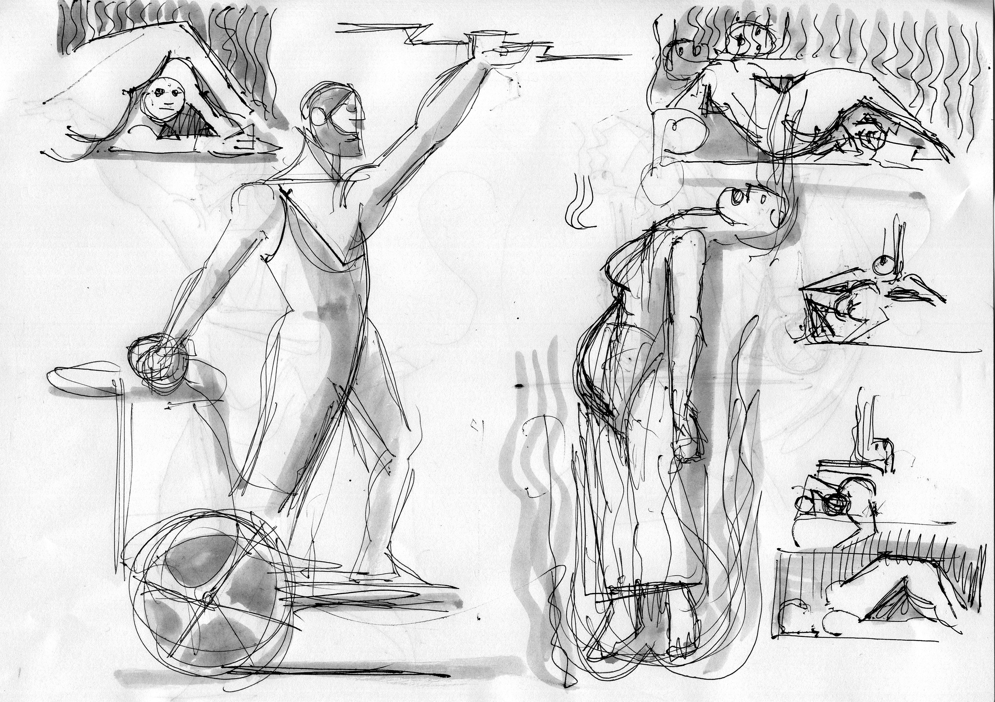 Oreibasie Drawing, studies for a composition Pencil and ink on paper, 120 x 82 cm Collection of the artist |