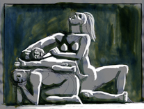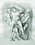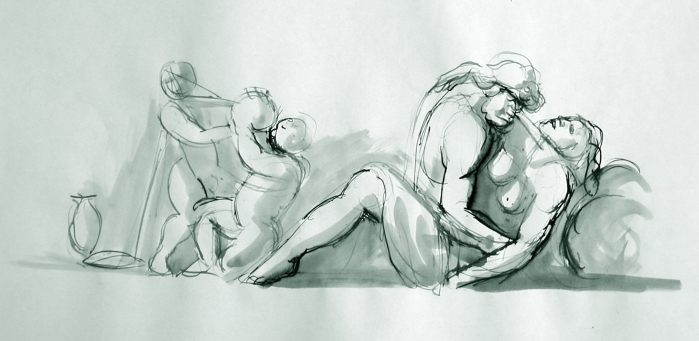 Satyr, nymph and children drinking Composition study for a rape Drawing Pen and ink on paper, 42 x 29,7 cm Collection of the artist |