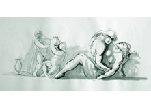 Oreibasie Drawing, studies for a composition Pencil on paper, digital retouching, 120 x 69 cm Collection of the artist |
