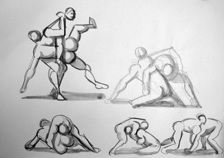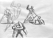 Fight Study for the Titanomachy Pencil and ink on paper, 14 x 9 cm Collection of the artist |