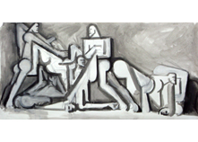 The drunkenness of Silenus Satyrs and the great bacchante asleep, (detail) Painting Acrylic and tar on canvas, 800 x 360 cm Work presented in-situ at the artist’s studio, Reims, France |