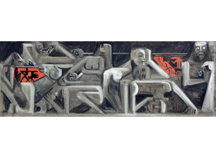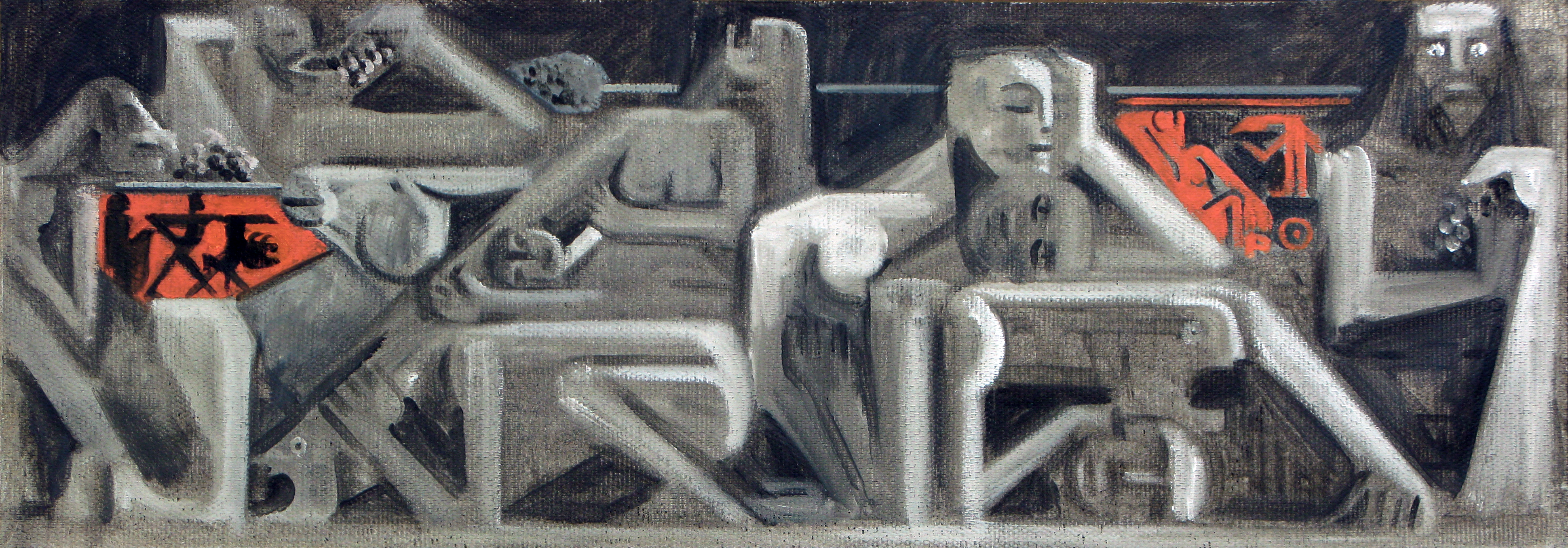 The drunkenness of Silenus Painting Acrylic and tar on canvas, 800 x 360 cm