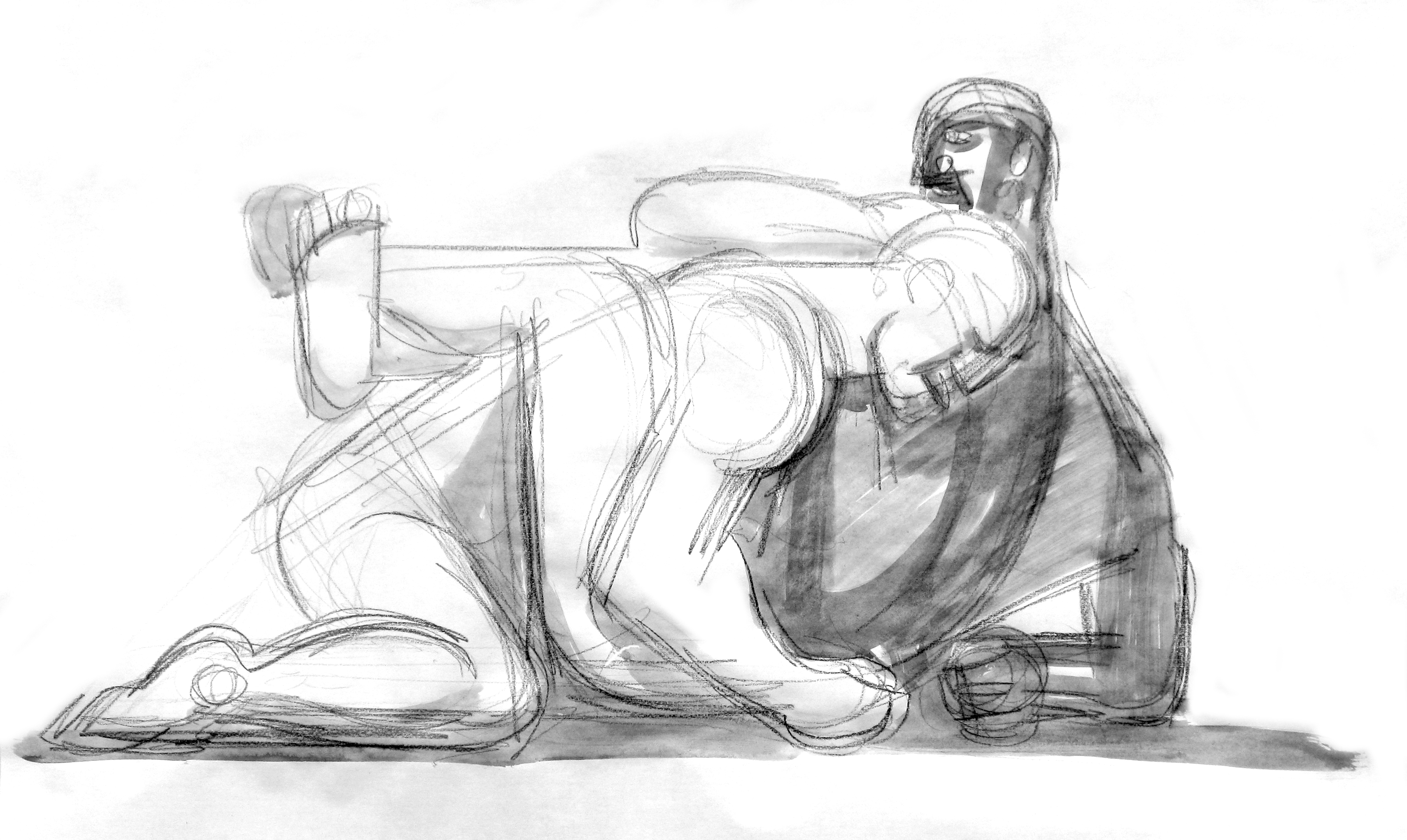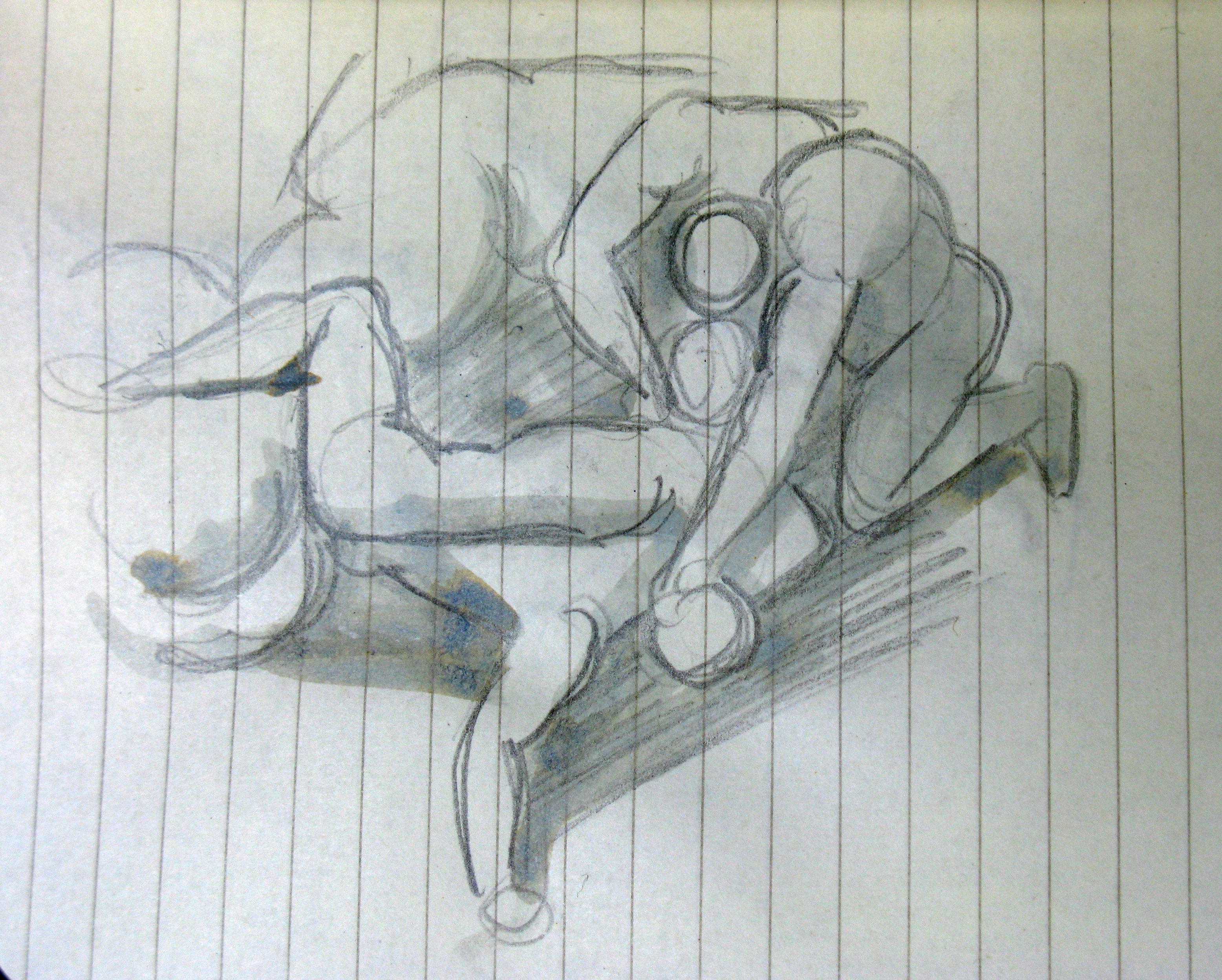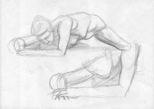 Oreibasie Drawing, studies for a composition Pencil on paper, 70 x 50 cm Collection of the artist |