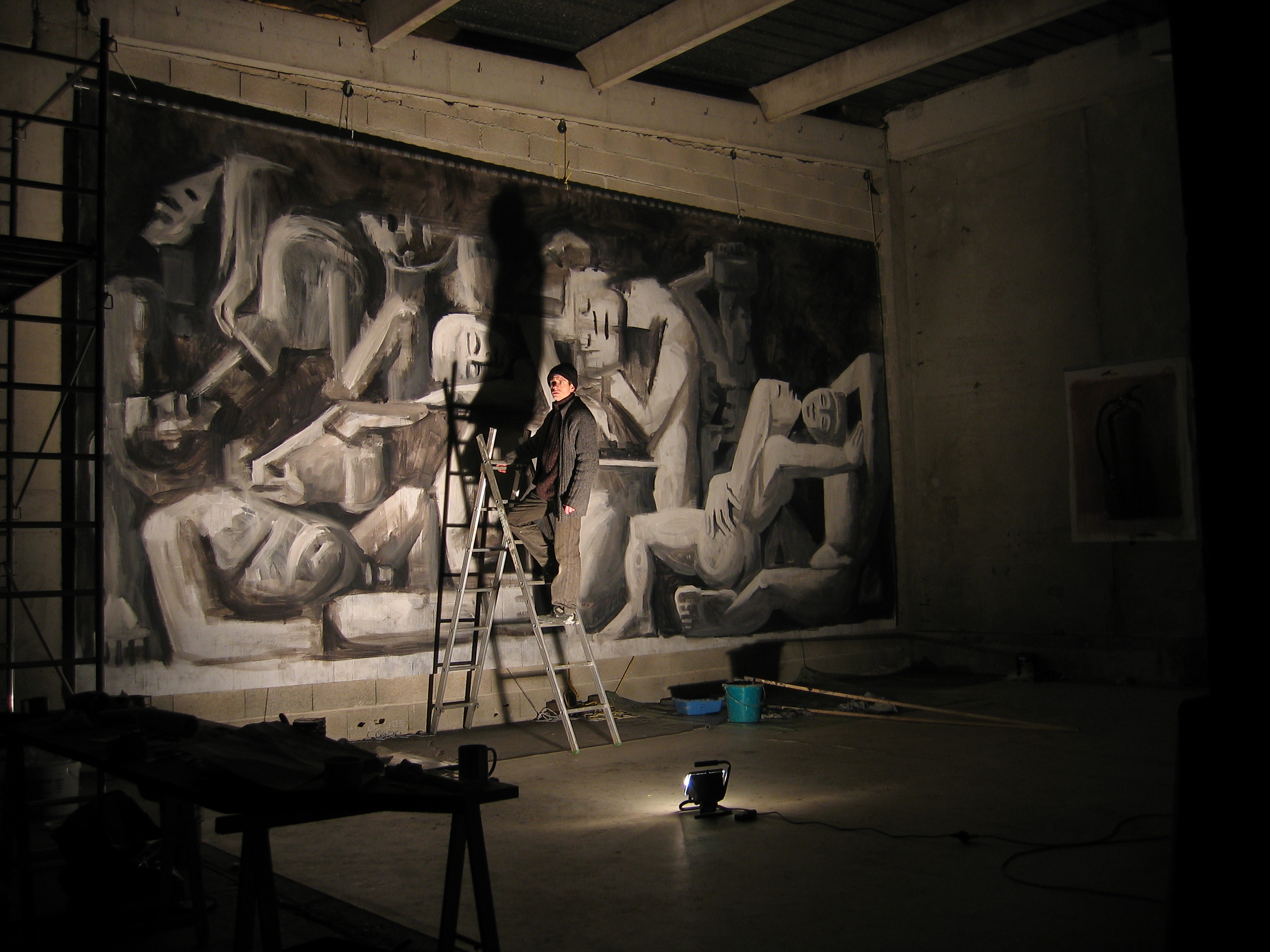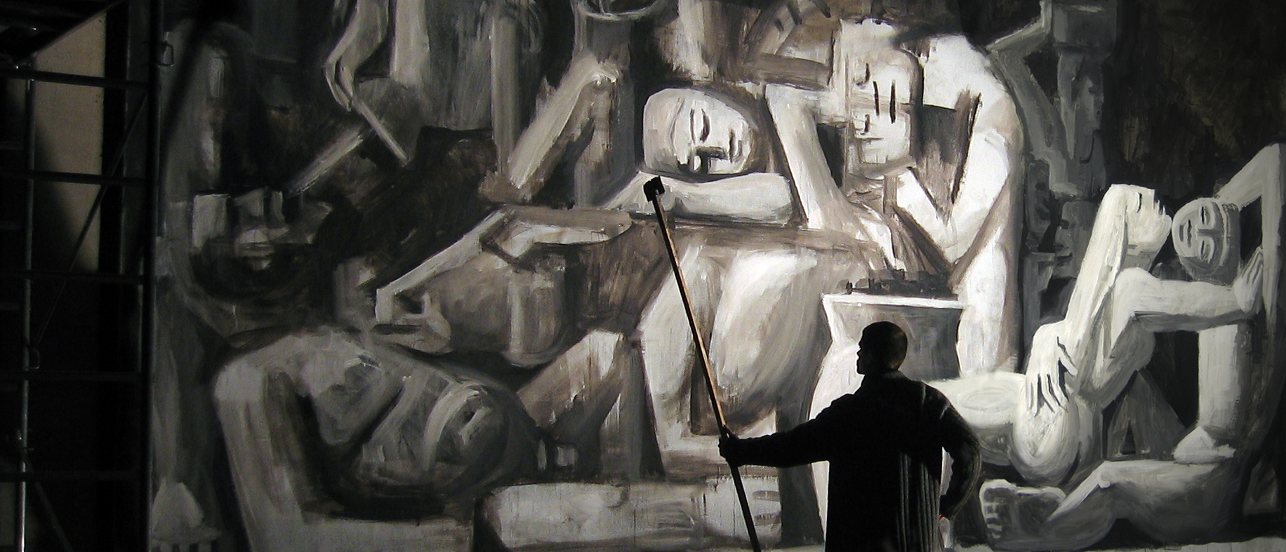 The drunkenness of Silenus Painting Acrylic and tar on canvas, 800 x 360 cm Work in progress, presented in-situ at the artist’s studio, Reims, France |