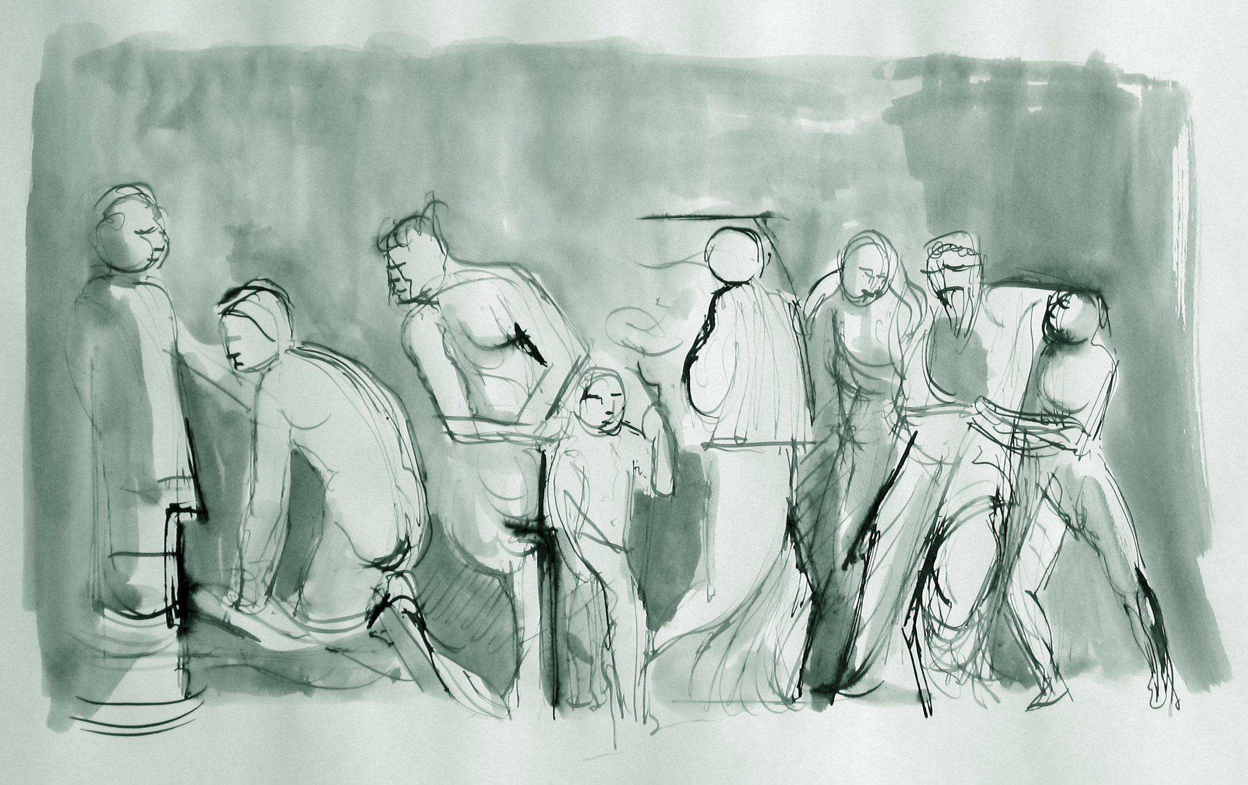 Bacchanal procession Drawing Pen and ink on paper, 42 x 29,7 cm Collection of the artist |
