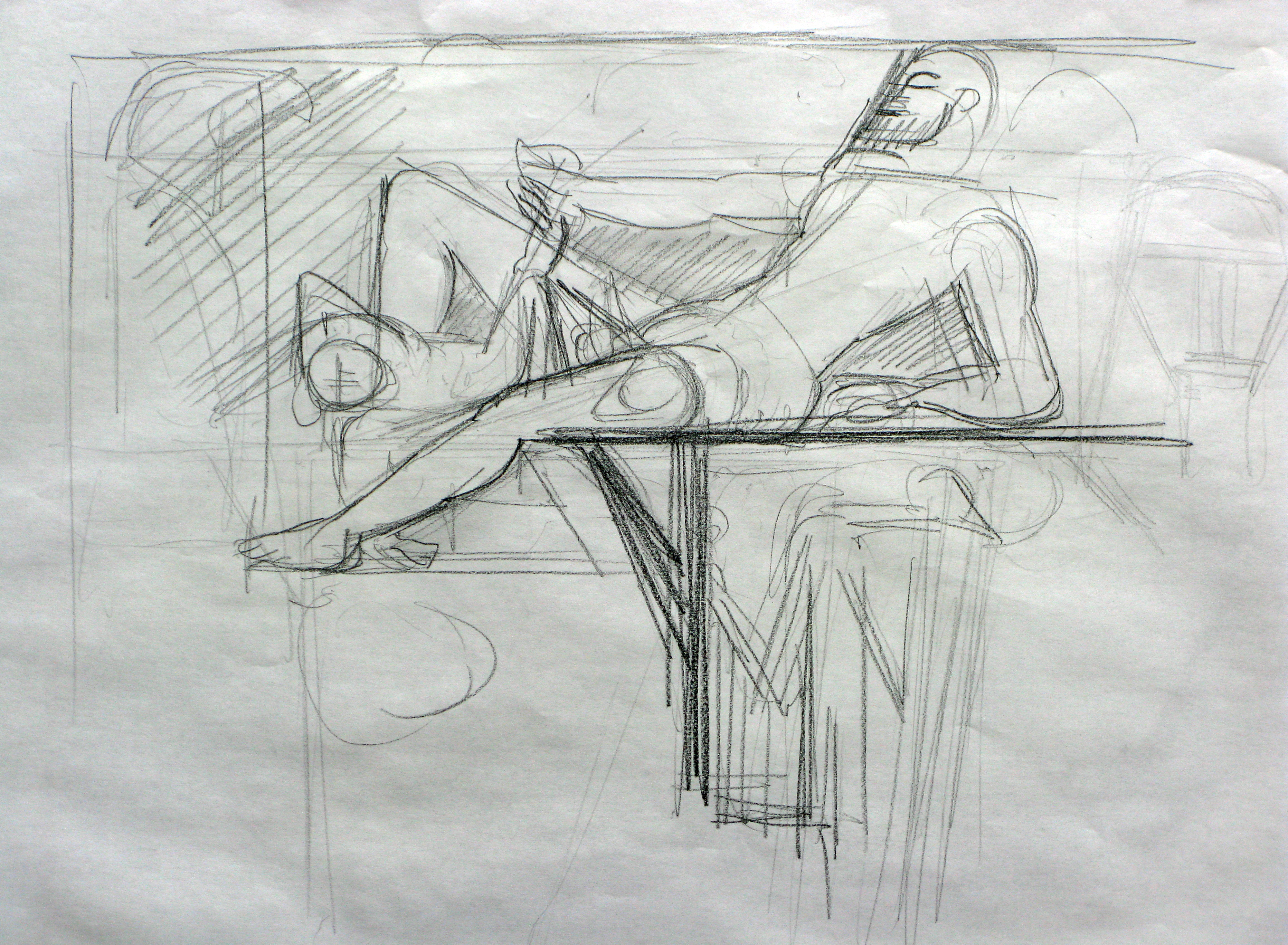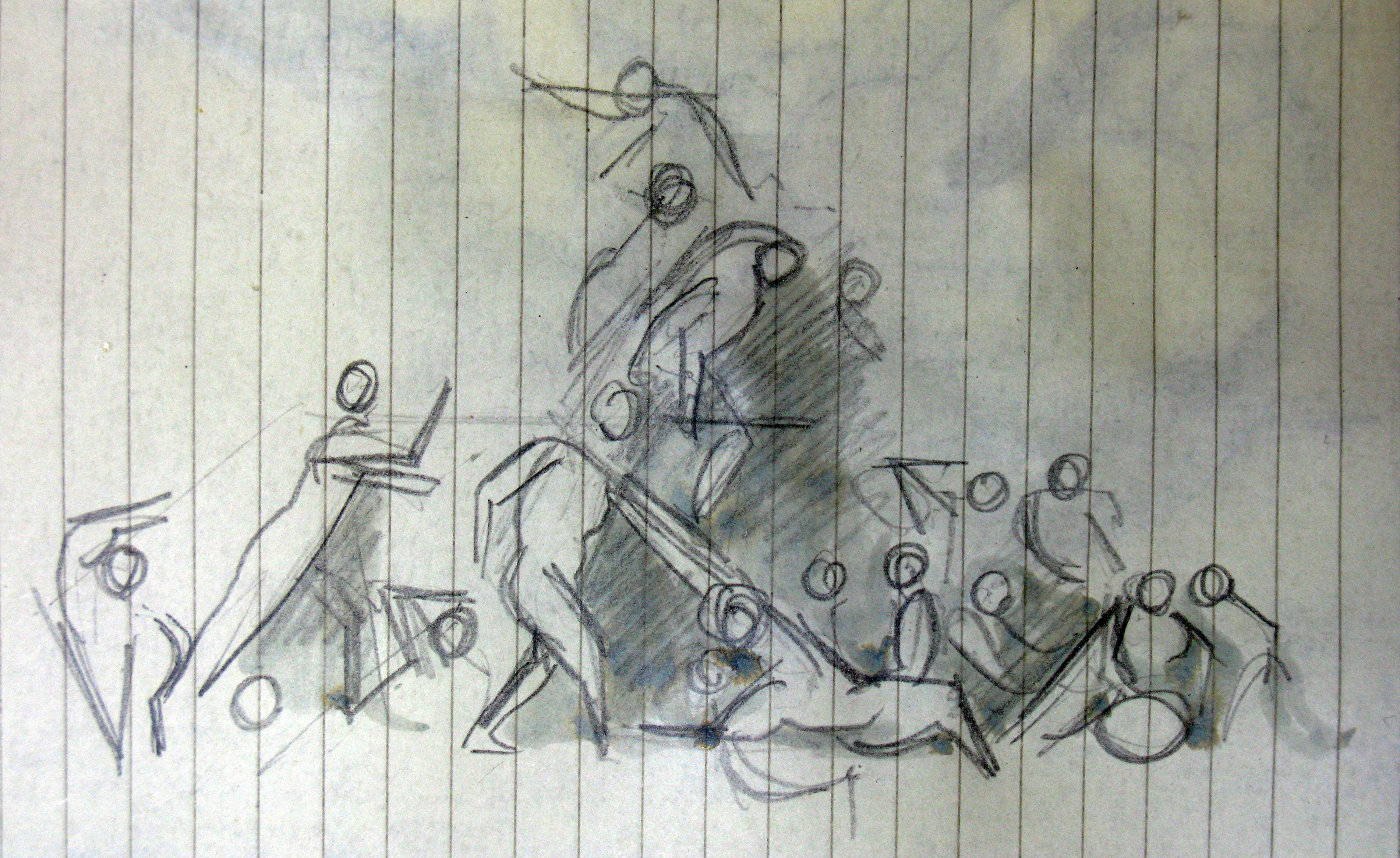 Oreibasie Drawing, studies for a composition Pencil and pen on paper, 120 x 61 cm Collection of the artist |