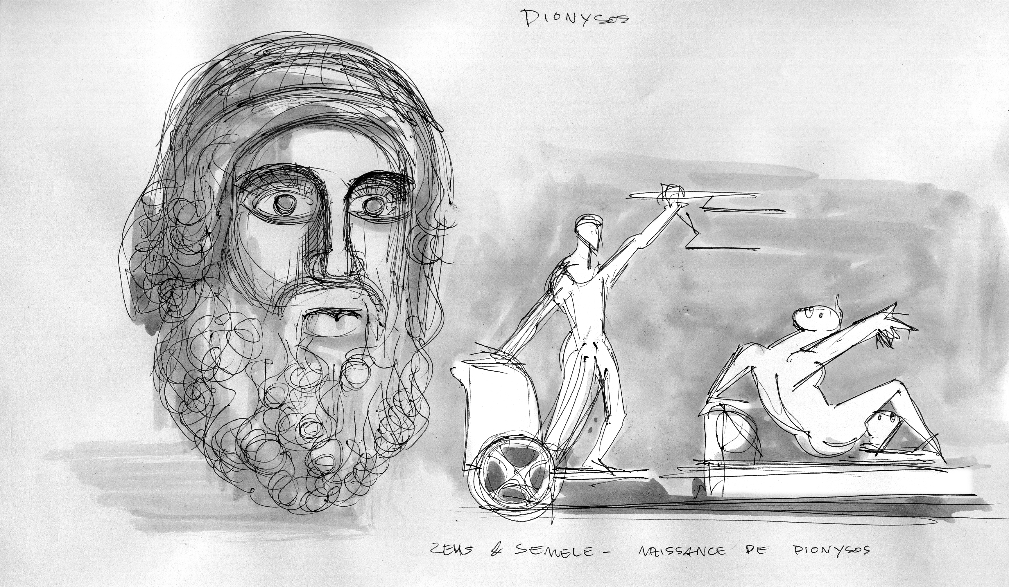 Bacchus-Dionysus Drawing Pencil and ink on paper, 100 x 115 cm