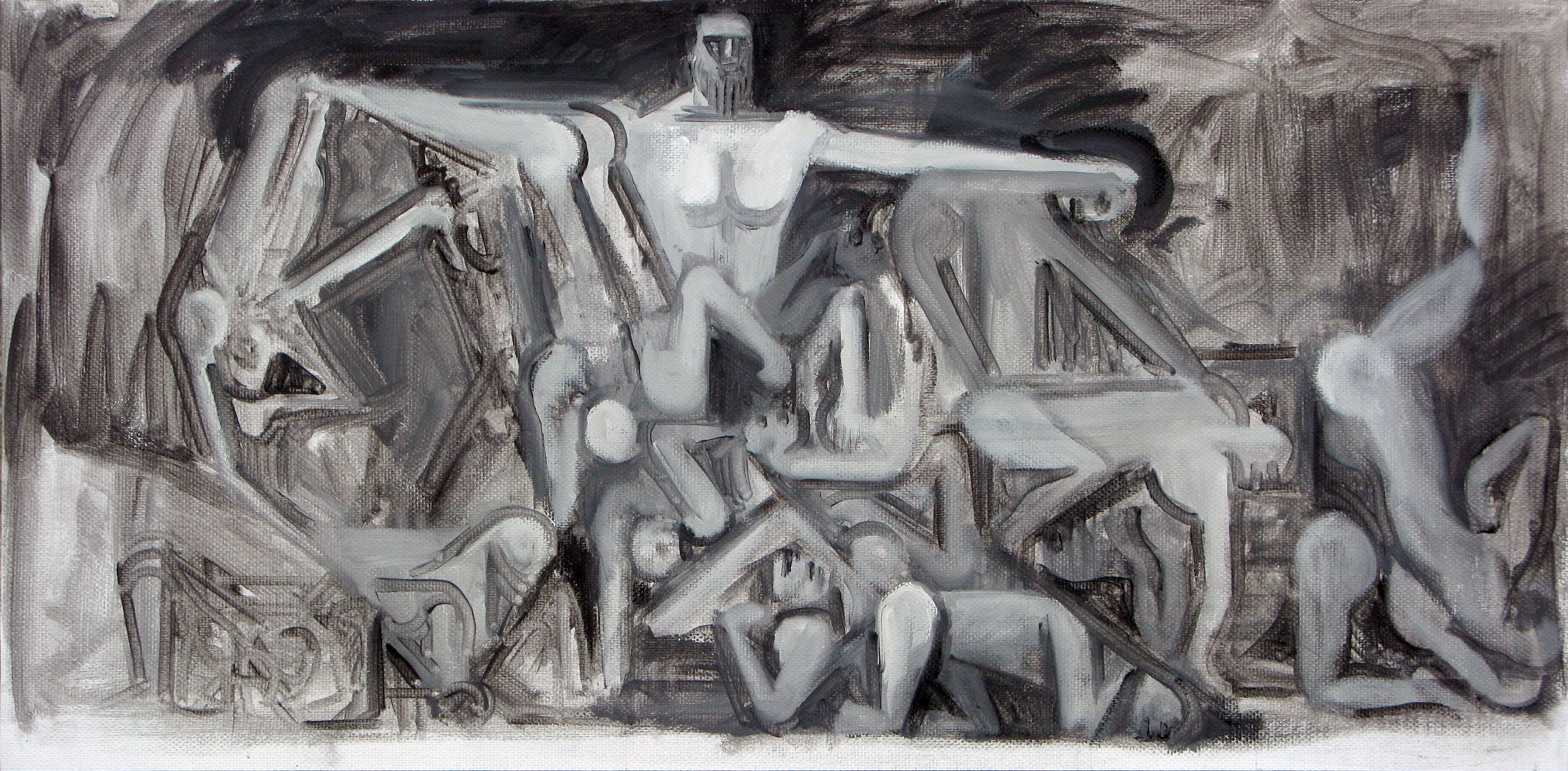 Titanomachy Zeus slaughtering Titans Painting Acrylic on canvas, 800 x 360 cm Collection of the artist |